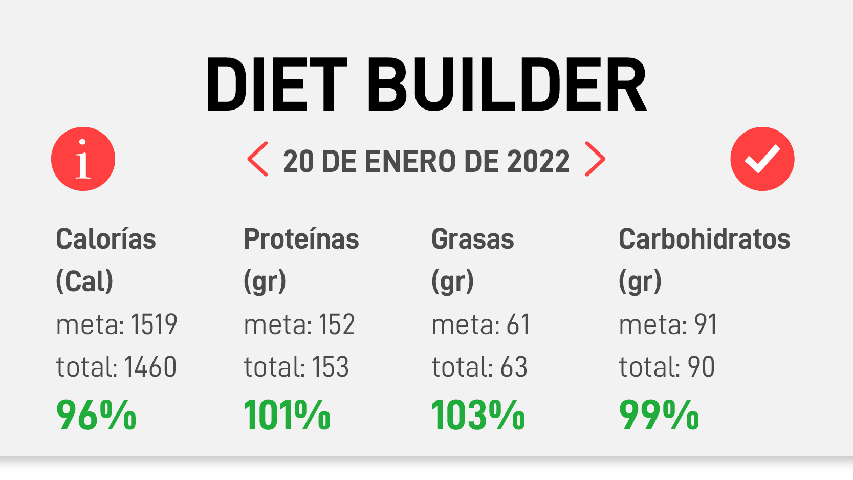En esta sección puedes crear con nuestra herramienta DIET BUILDER, tu propio plan de alimentación diario según tu requerimiento nutricional personal para cumplir tu objetivo.